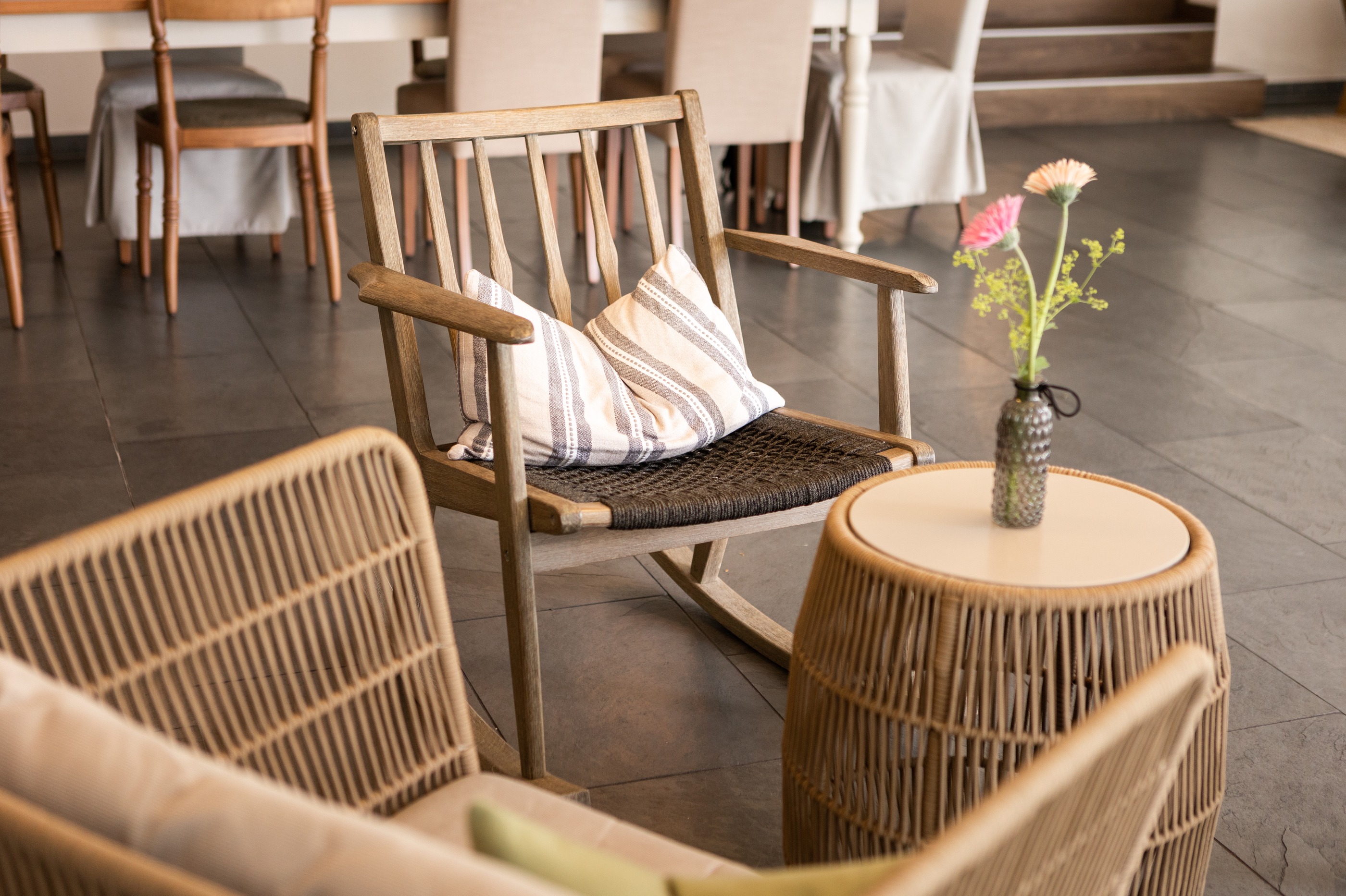 Die exklusive Panoramalounge bietet Ihnen einen atemberaubenden Weitblick über den gesamten Meraner Talkessel und die Bergkulisse.